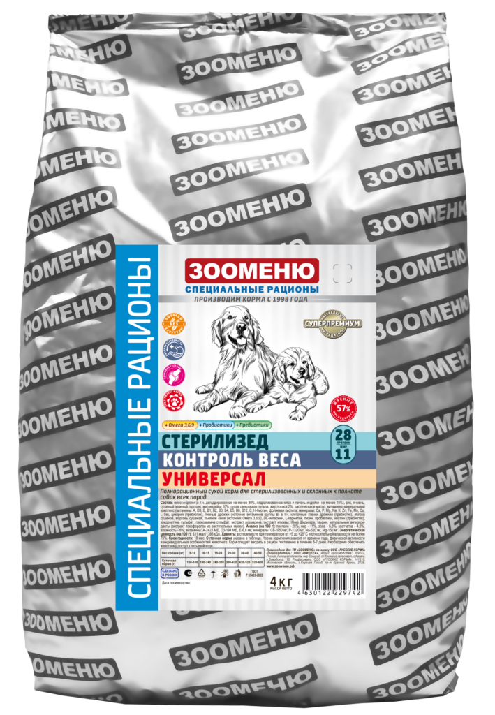 Полнорационный сухой корм для стерилизованных и склонных к полноте собак всех пород